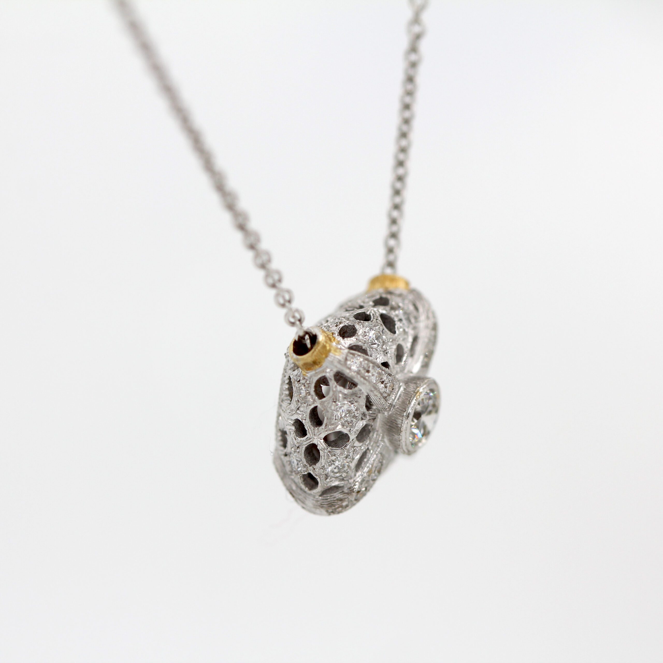 This Florentine-style gold pendant is an extraordinary piece of jewelry with a striking aesthetic, perfect for those seeking an original and refined design.