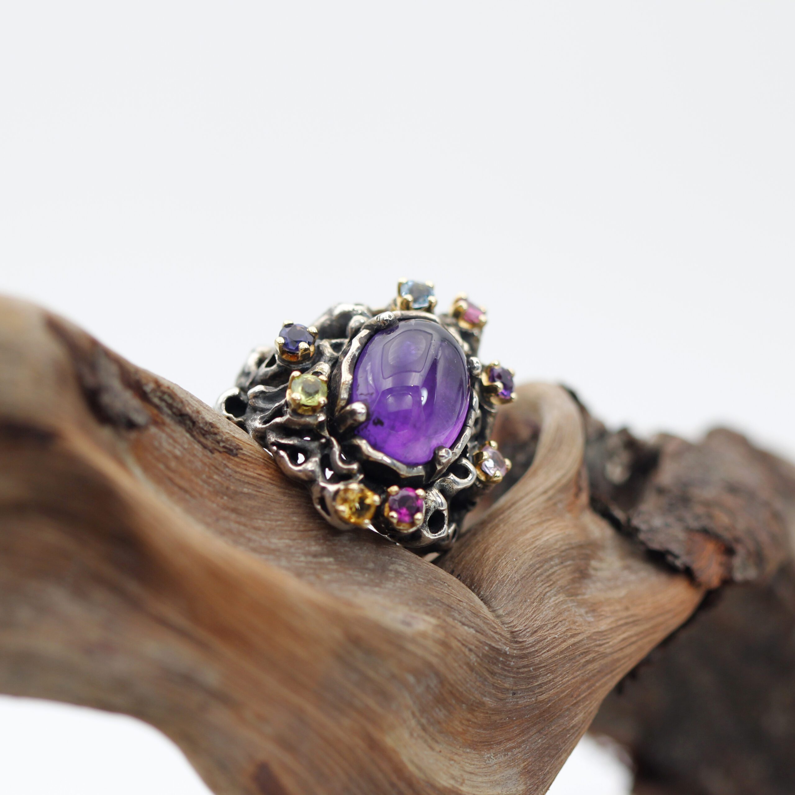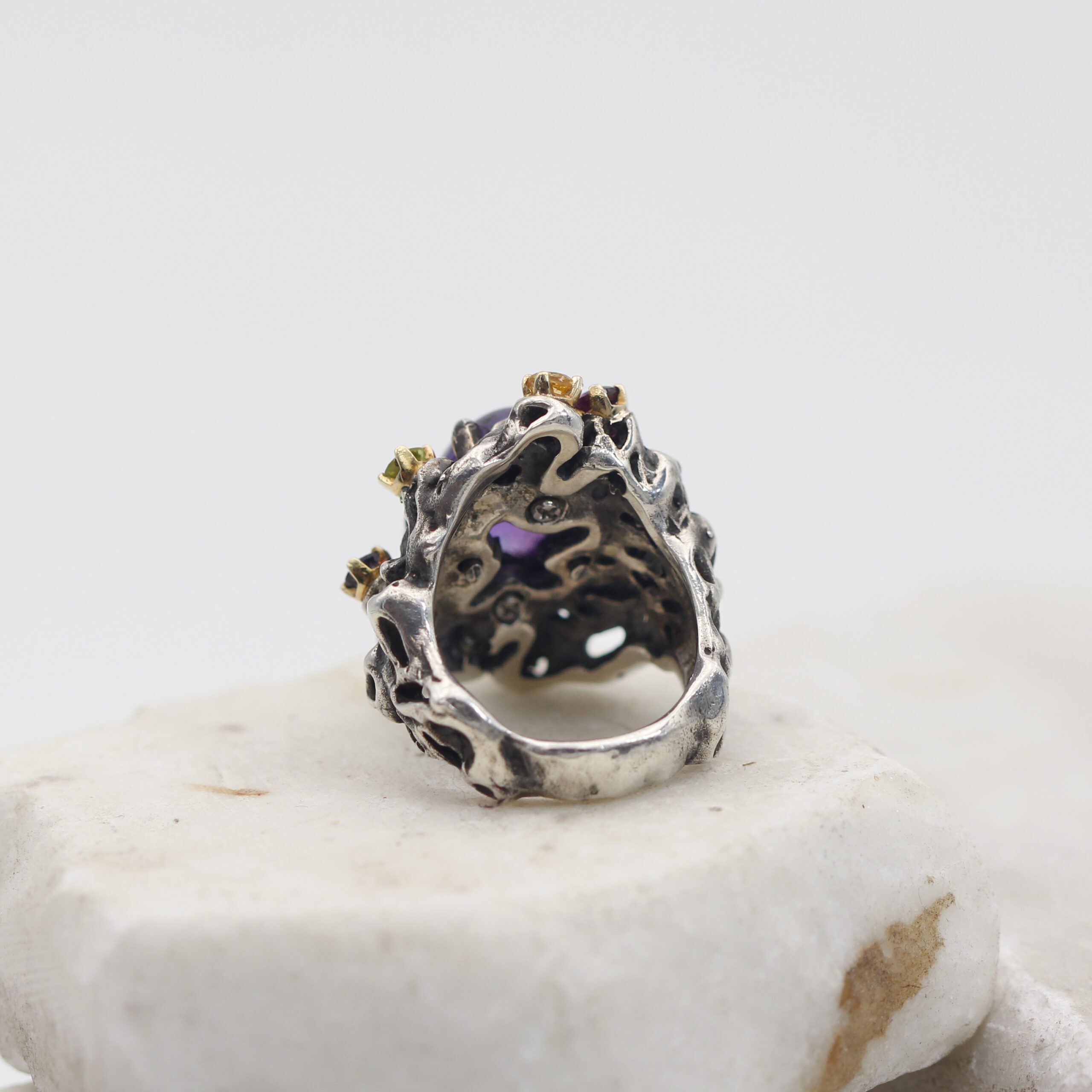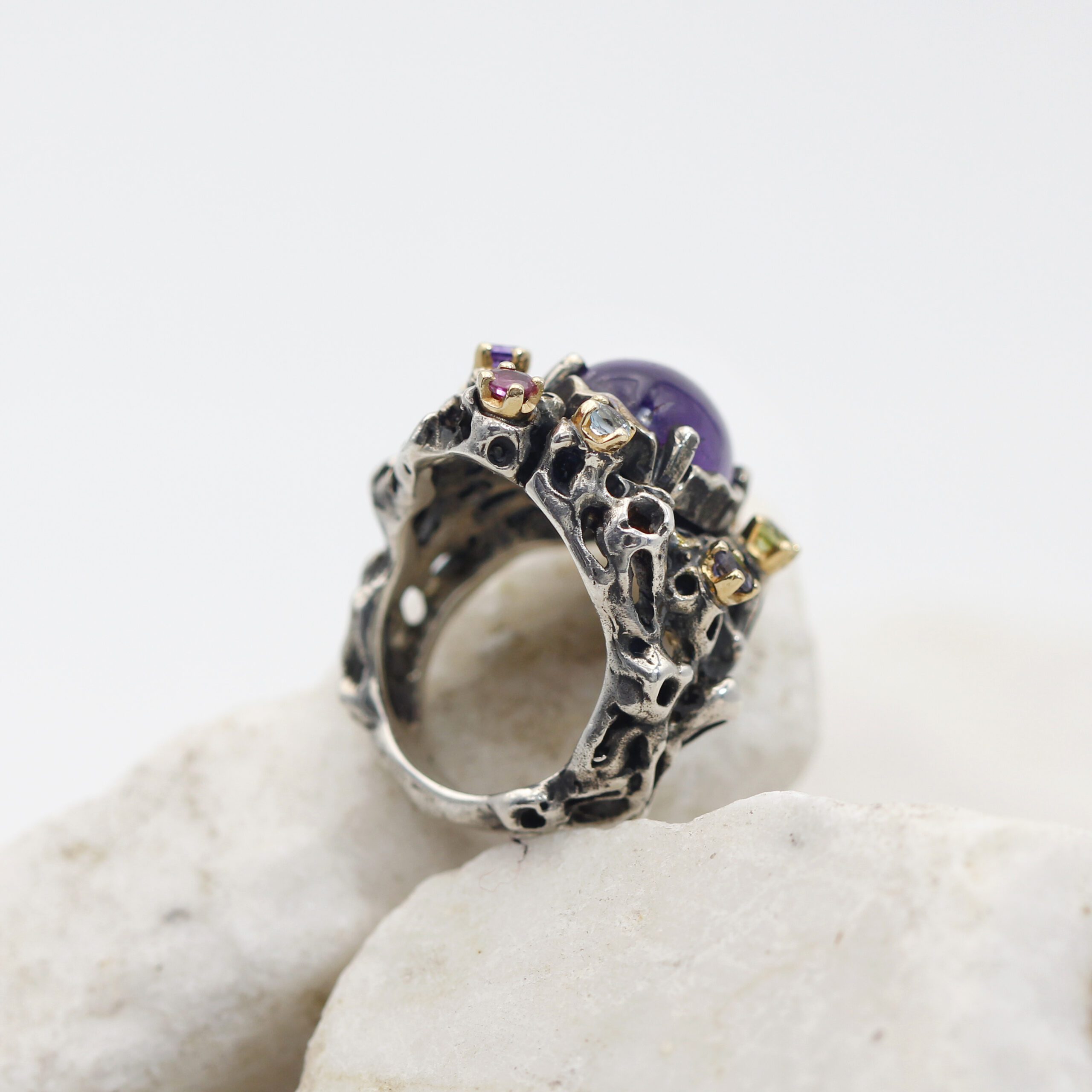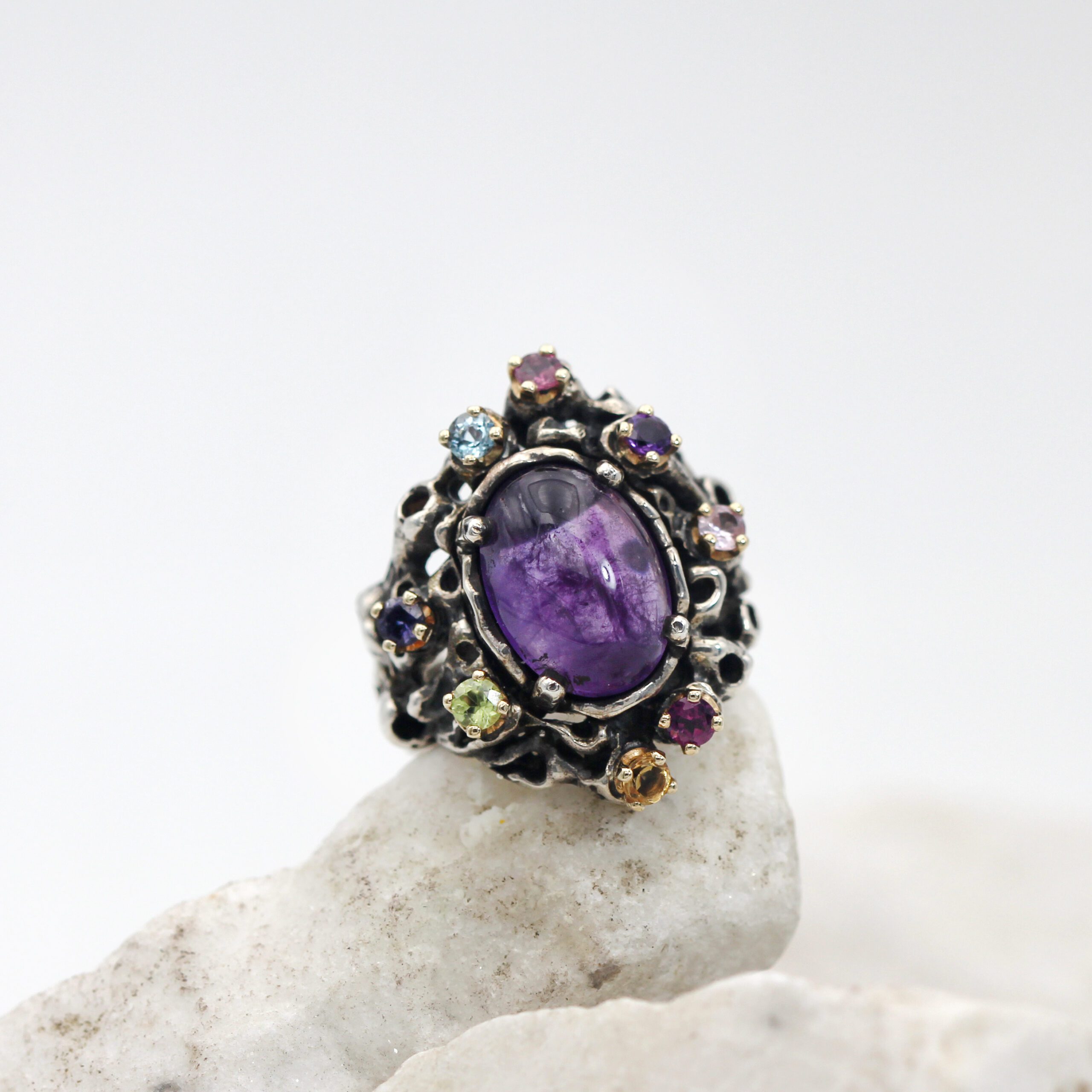 Silver and Gold Ring with Amethyst and Colored Gemstones – Mars Collection.