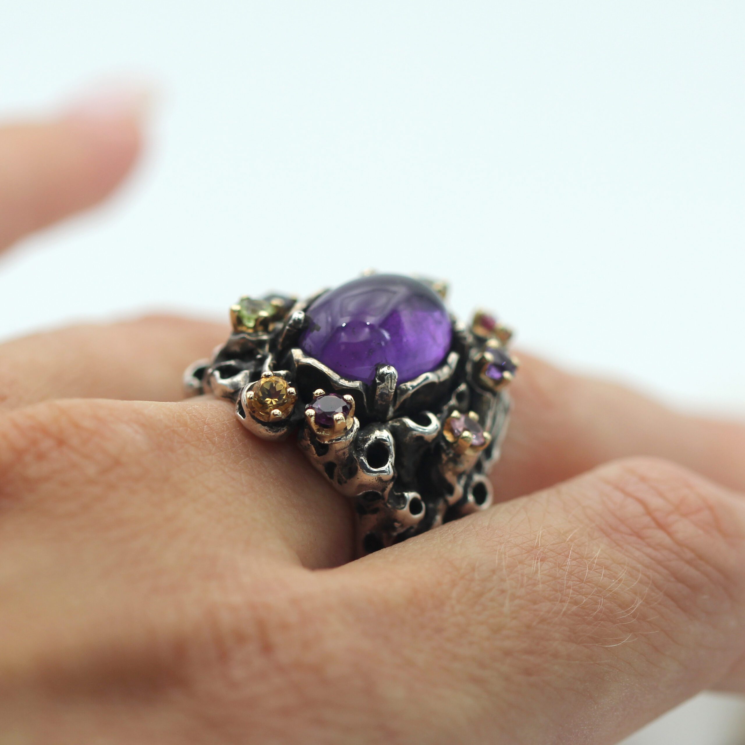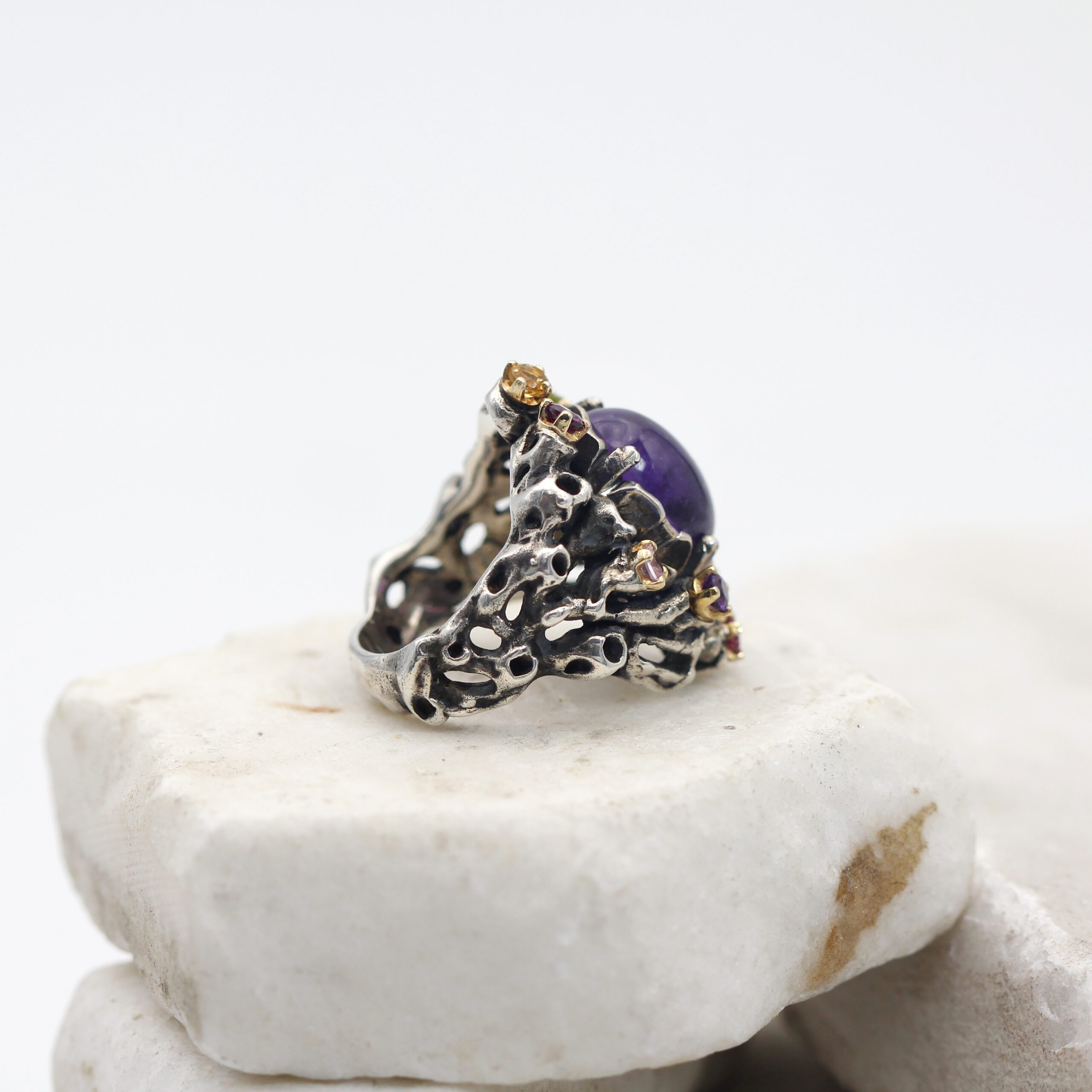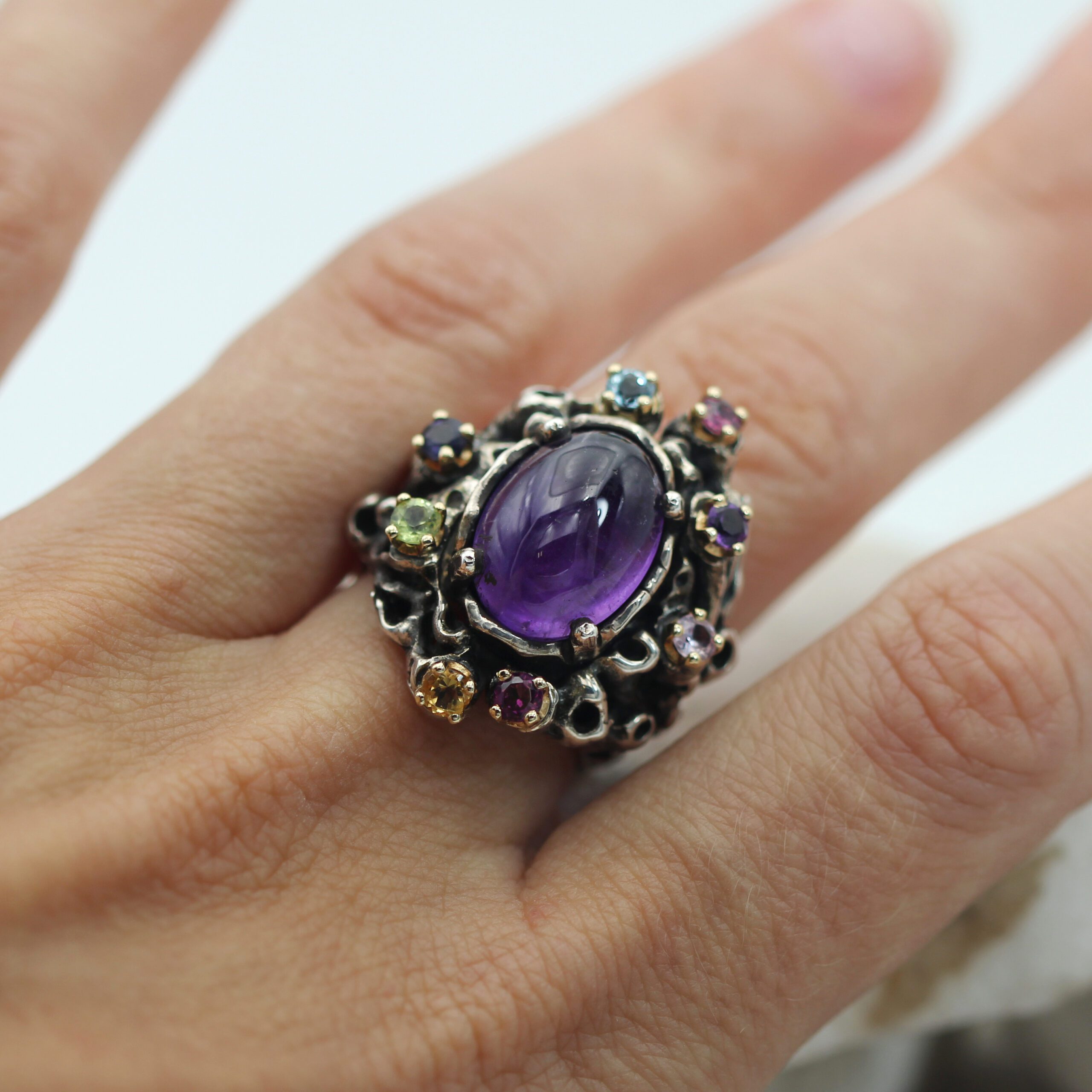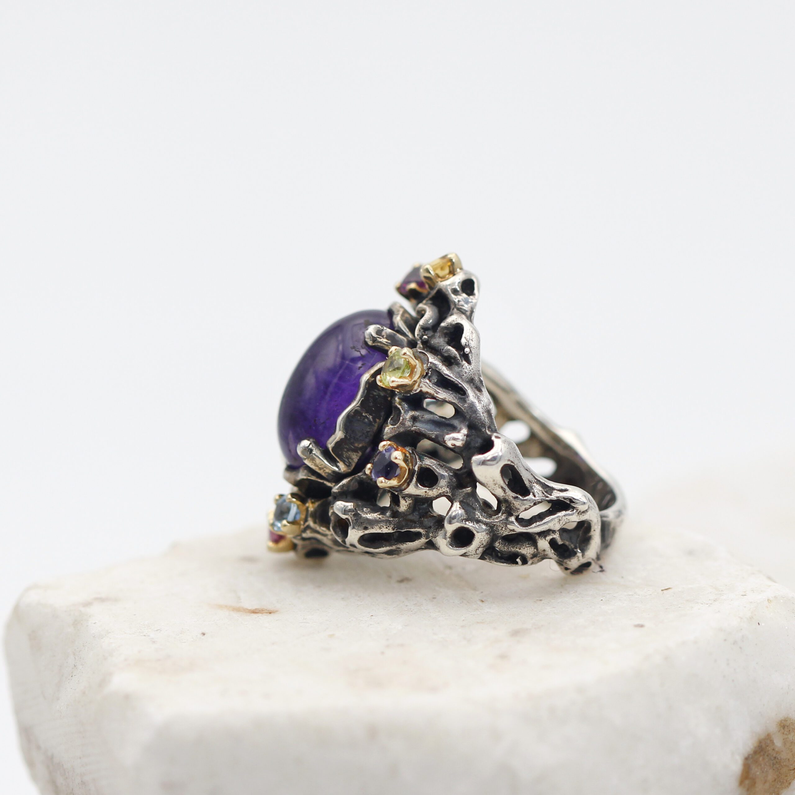 Silver and Gold Ring with Amethyst and Colored Gemstones – Mars Collection.