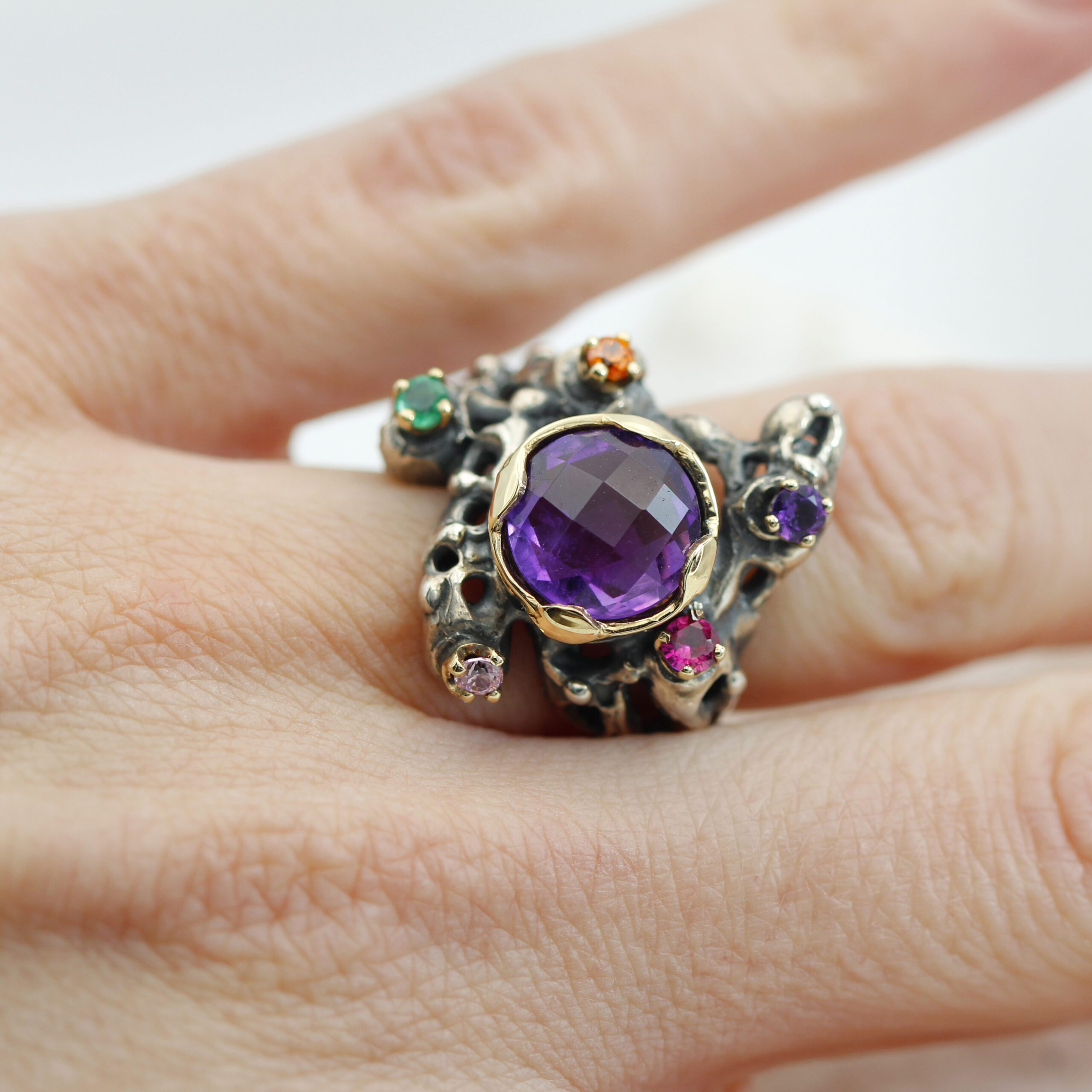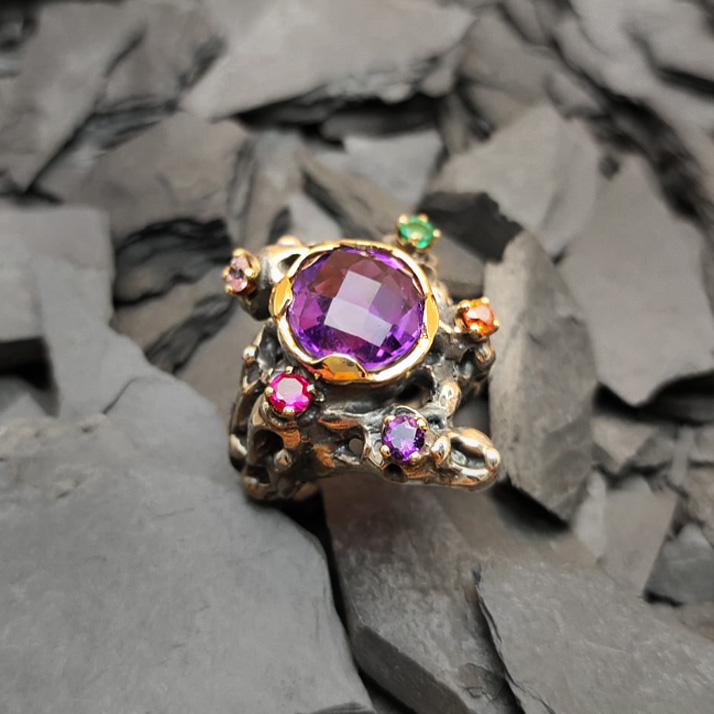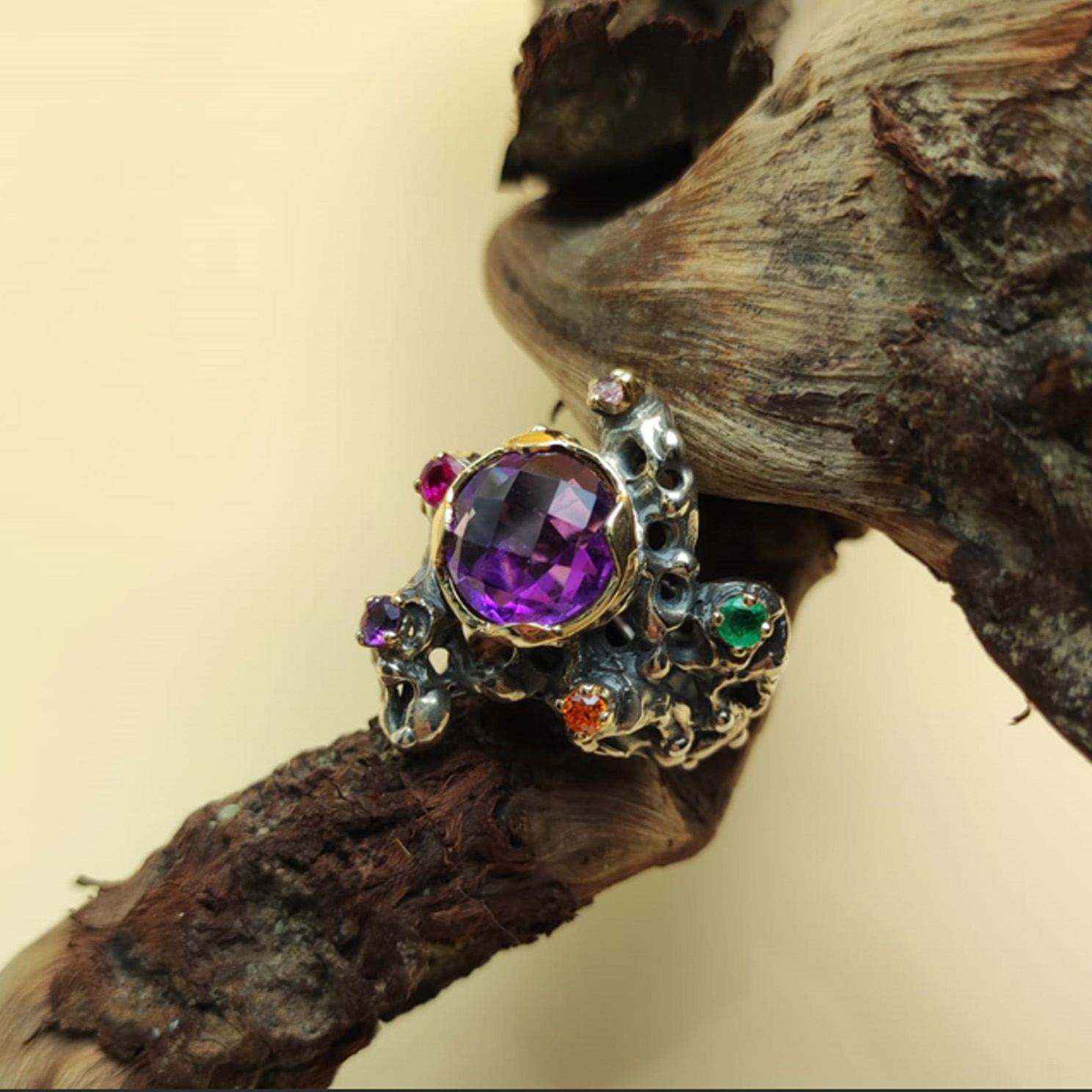 The silver and gold ring with amethyst is an elegant and refined piece of jewelry that never goes out of style. This stunning ring is perfect for those who appreciate the natural beauty of gemstones and the craftsmanship of handmade jewelry.