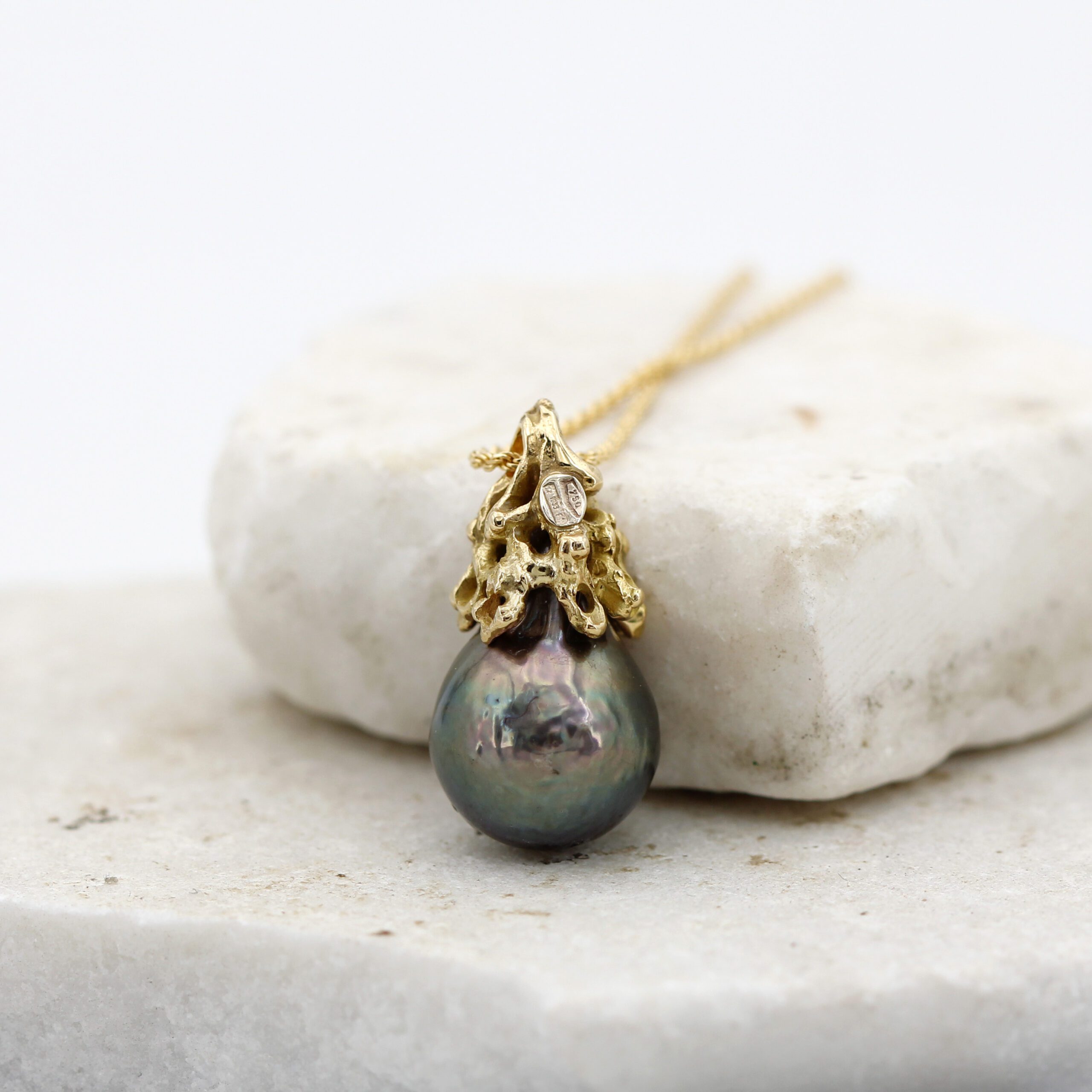 18K Gold Pendant, handcrafted, featuring an irregular upper structure that evokes a natural form. The design is inspired by the rugged and mysterious surface of Mars, recreating in fine detail the craters and depths of the Red Planet.