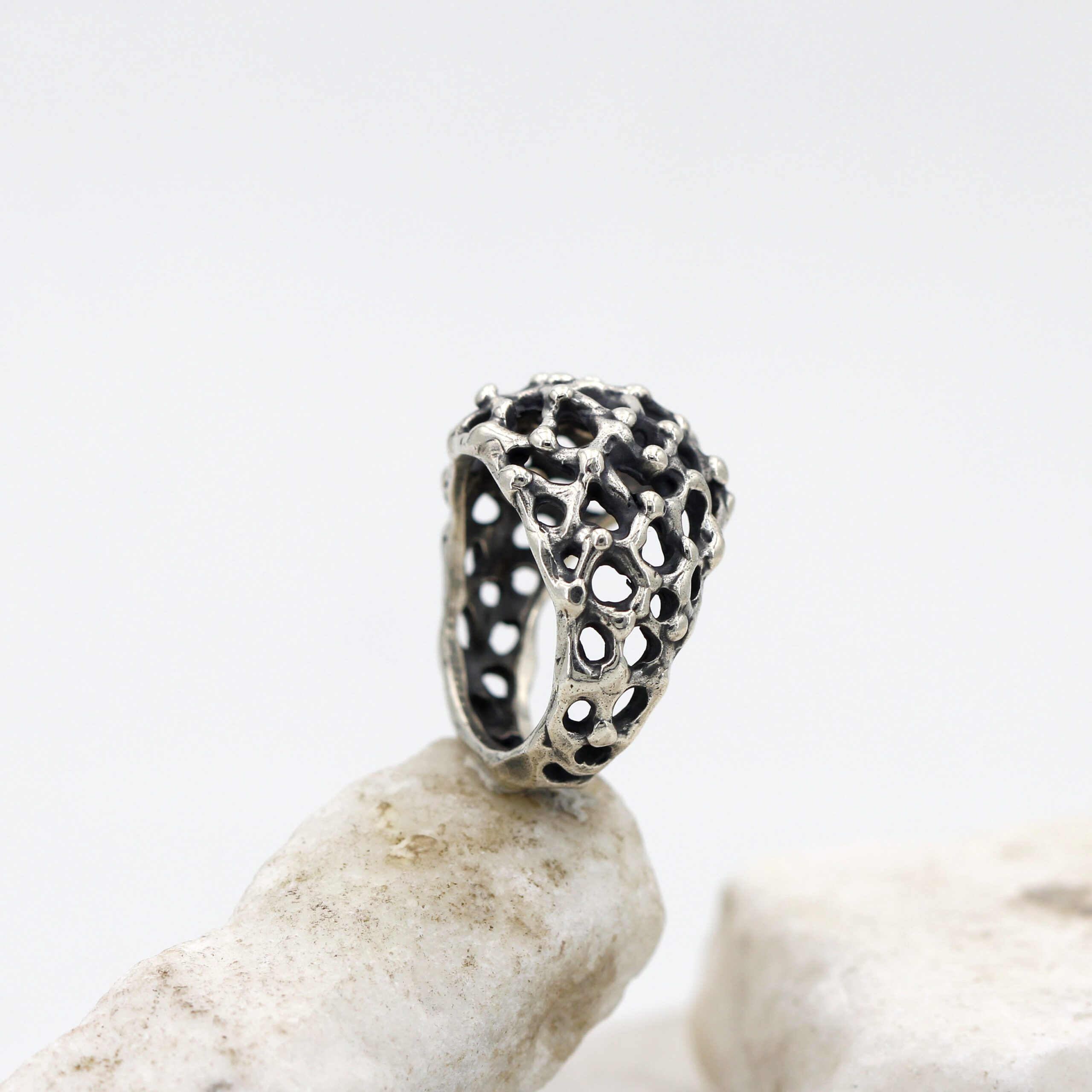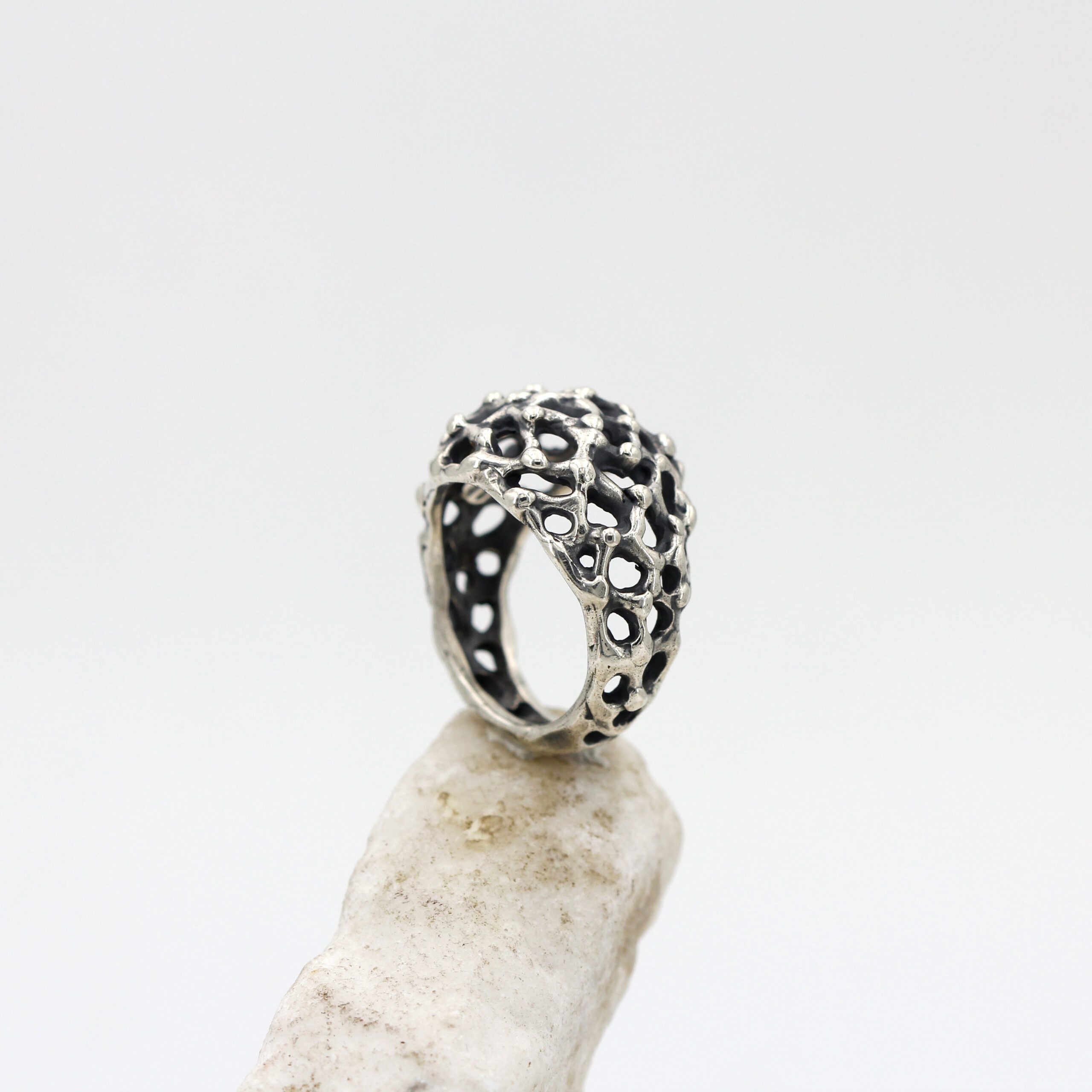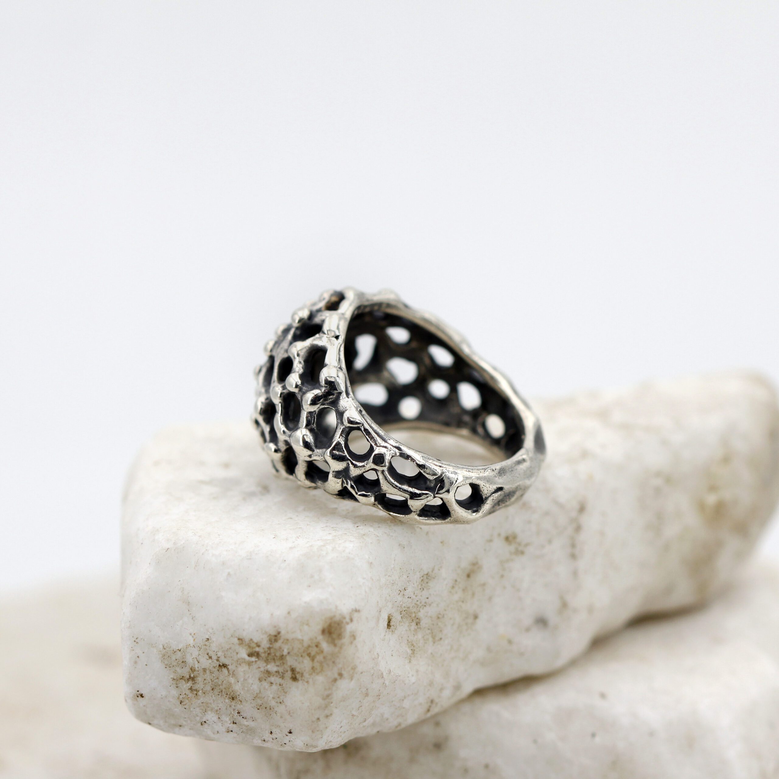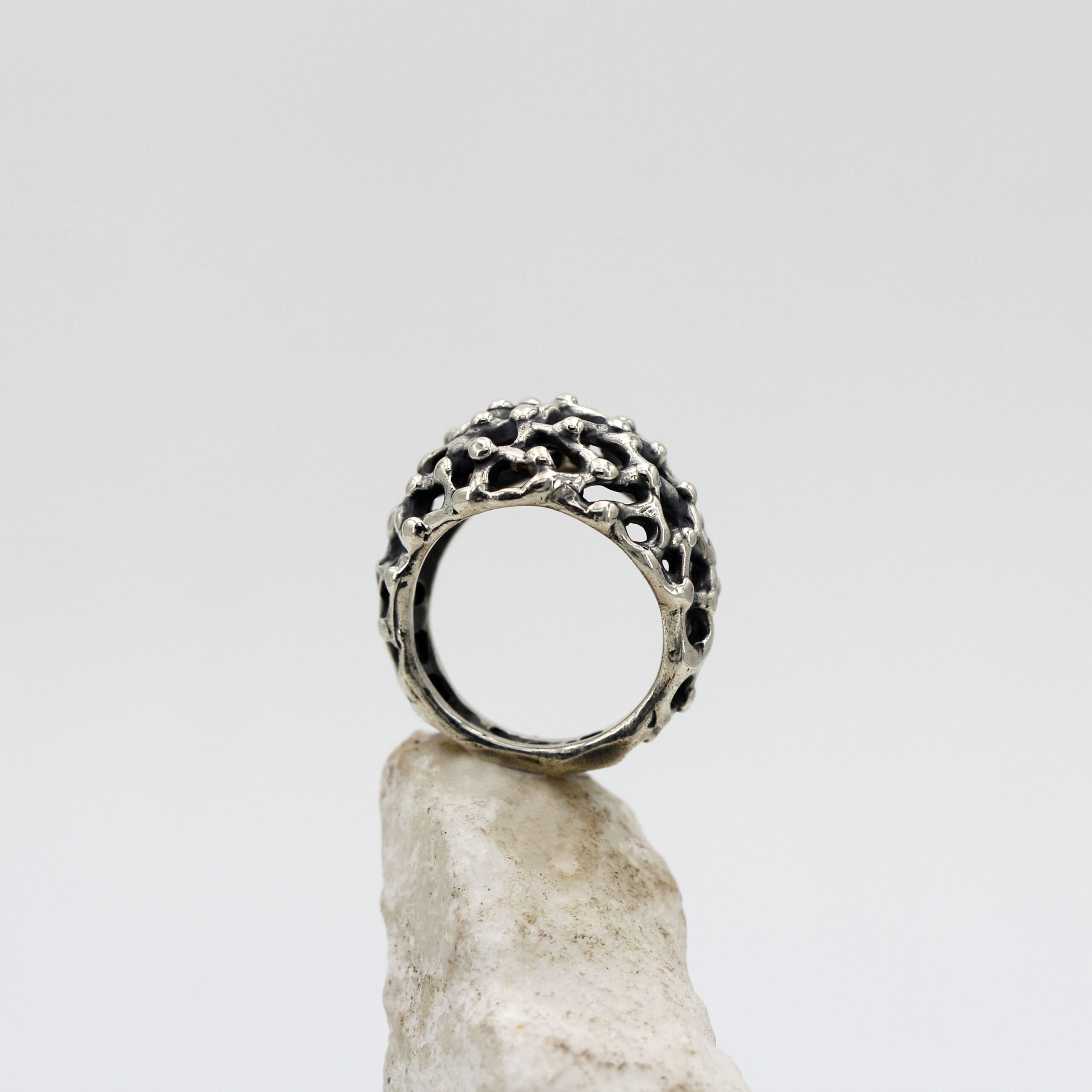 This ring design was inspired by the rugged and mysterious surface of Mars, recreating in fine detail the craters and depths of the Red Planet’s terrain.