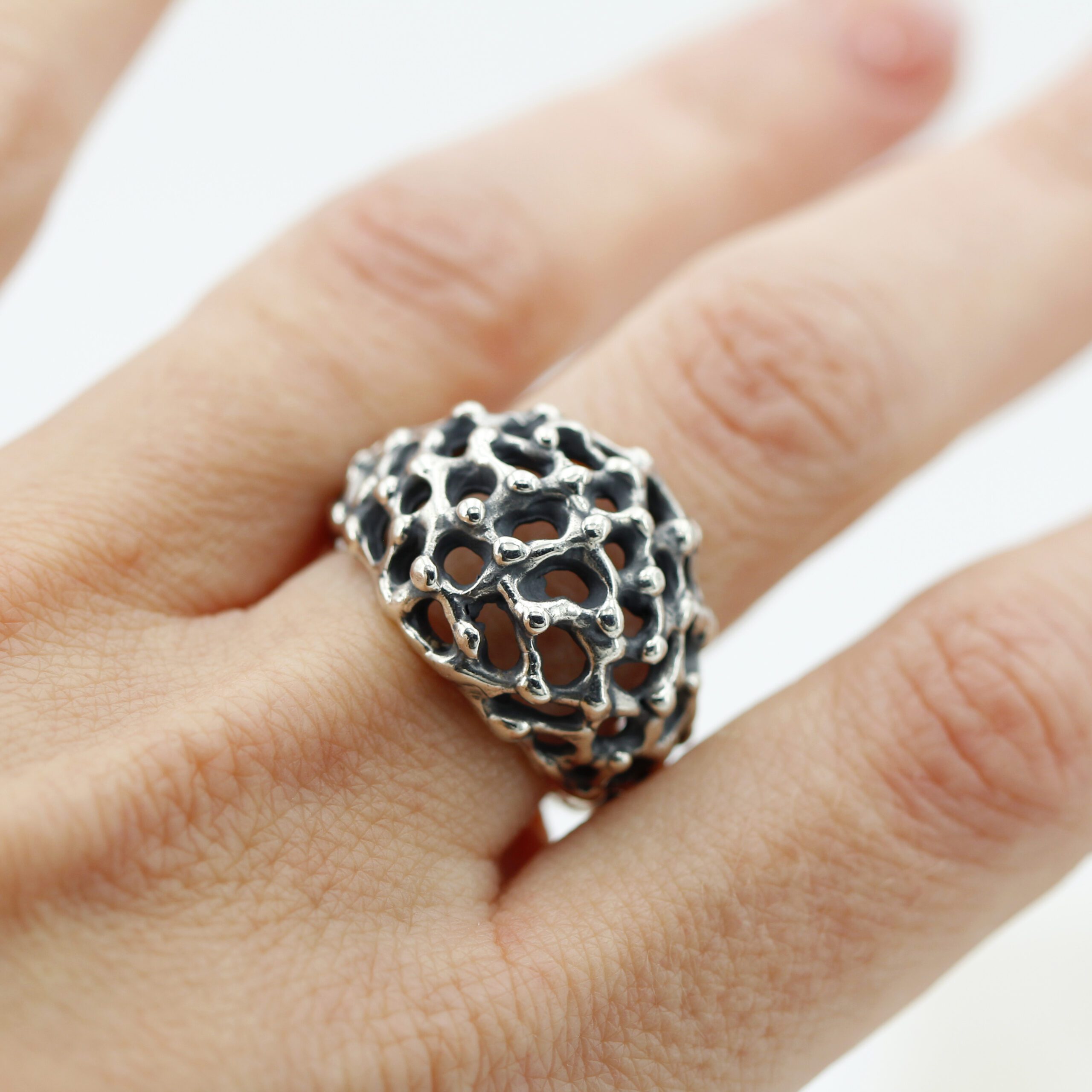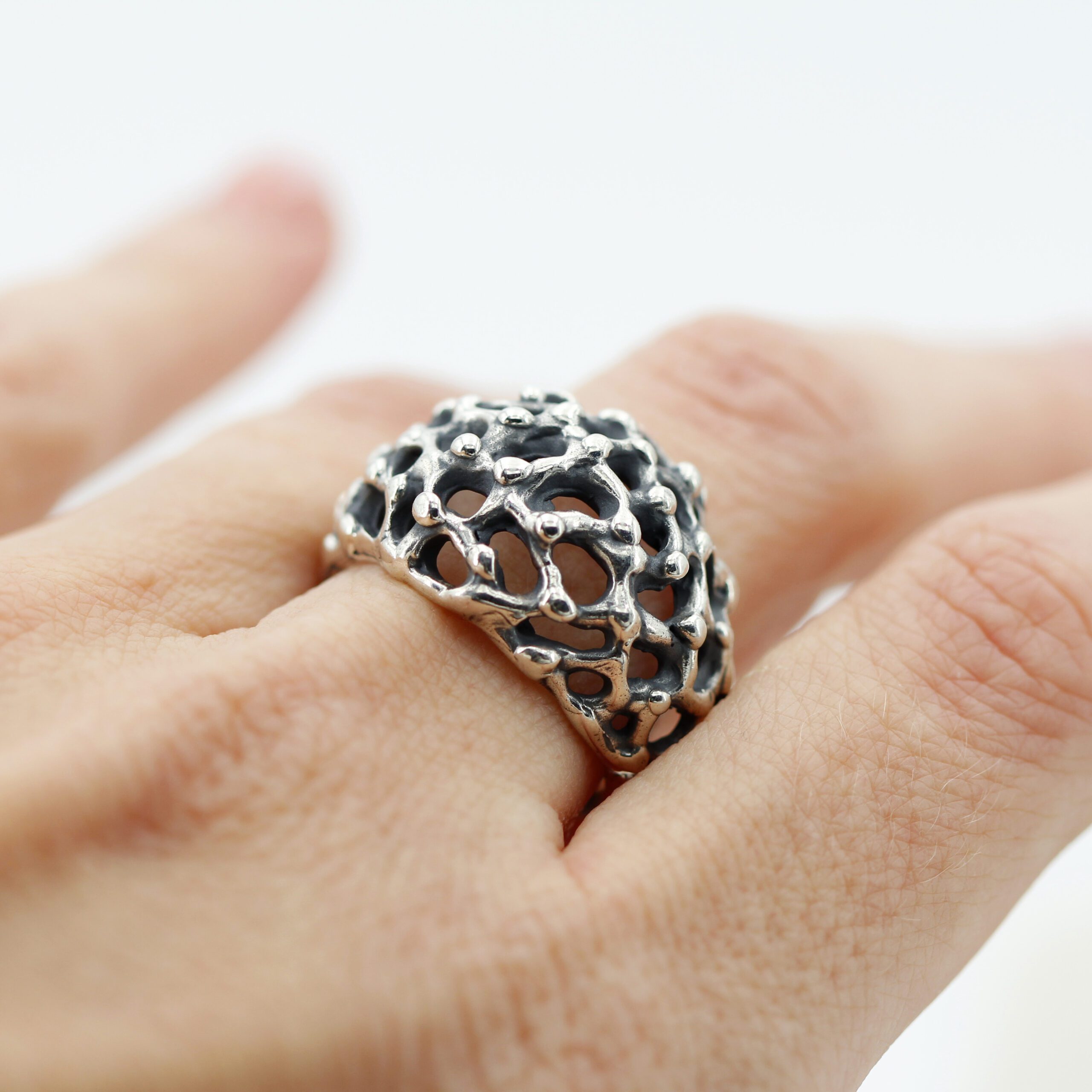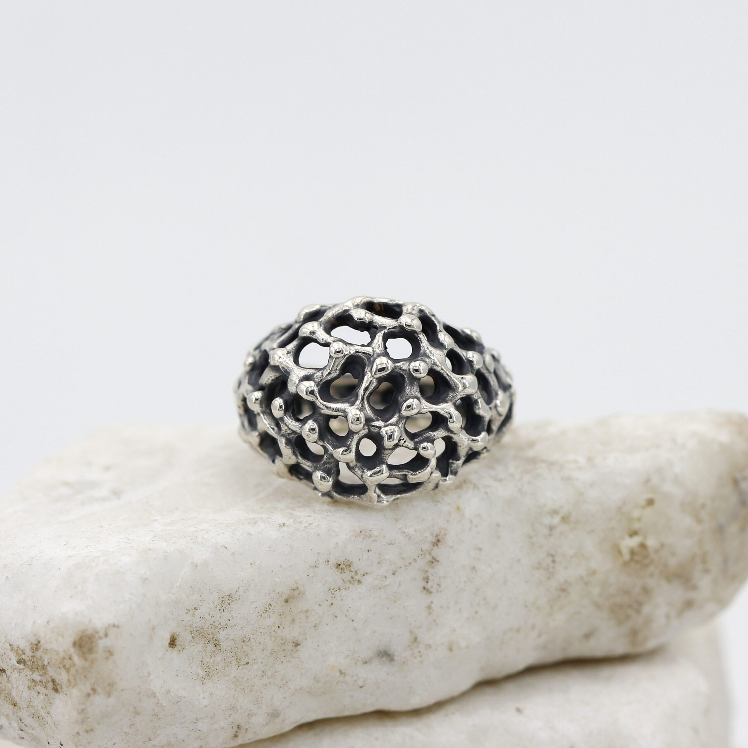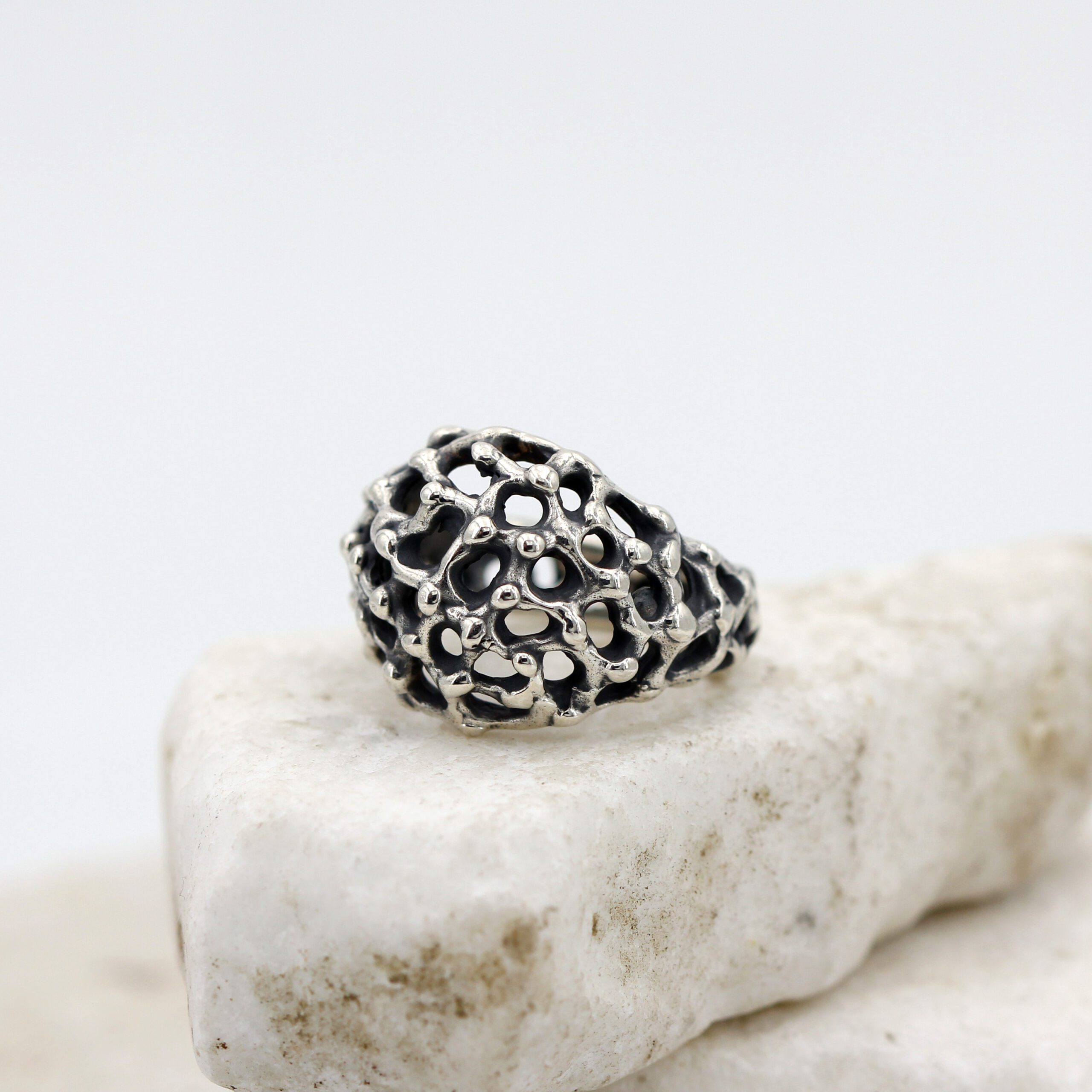 This ring design was inspired by the rugged and mysterious surface of Mars, recreating in fine detail the craters and depths of the Red Planet’s terrain.