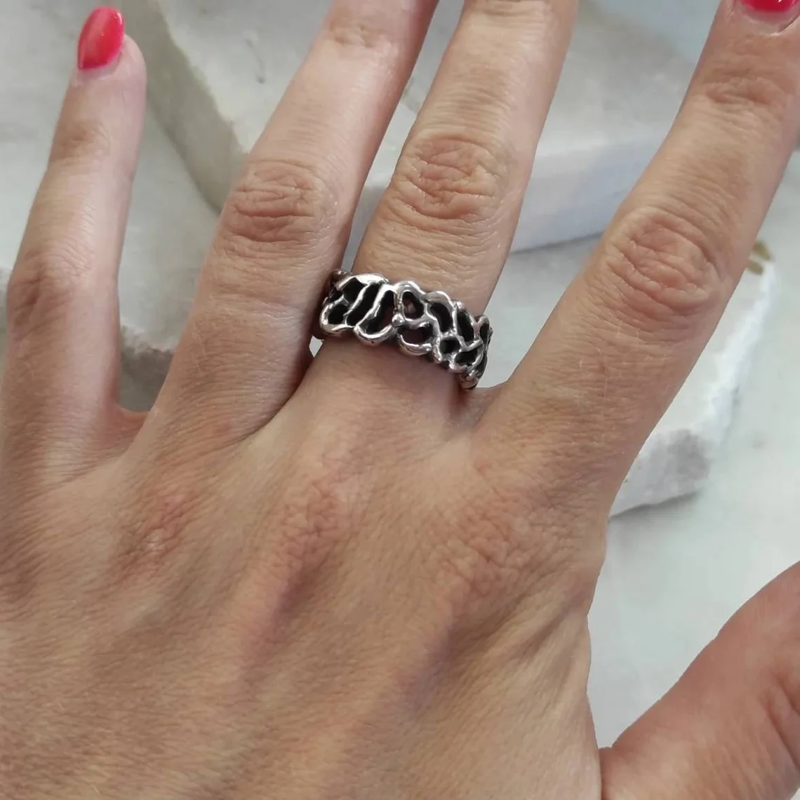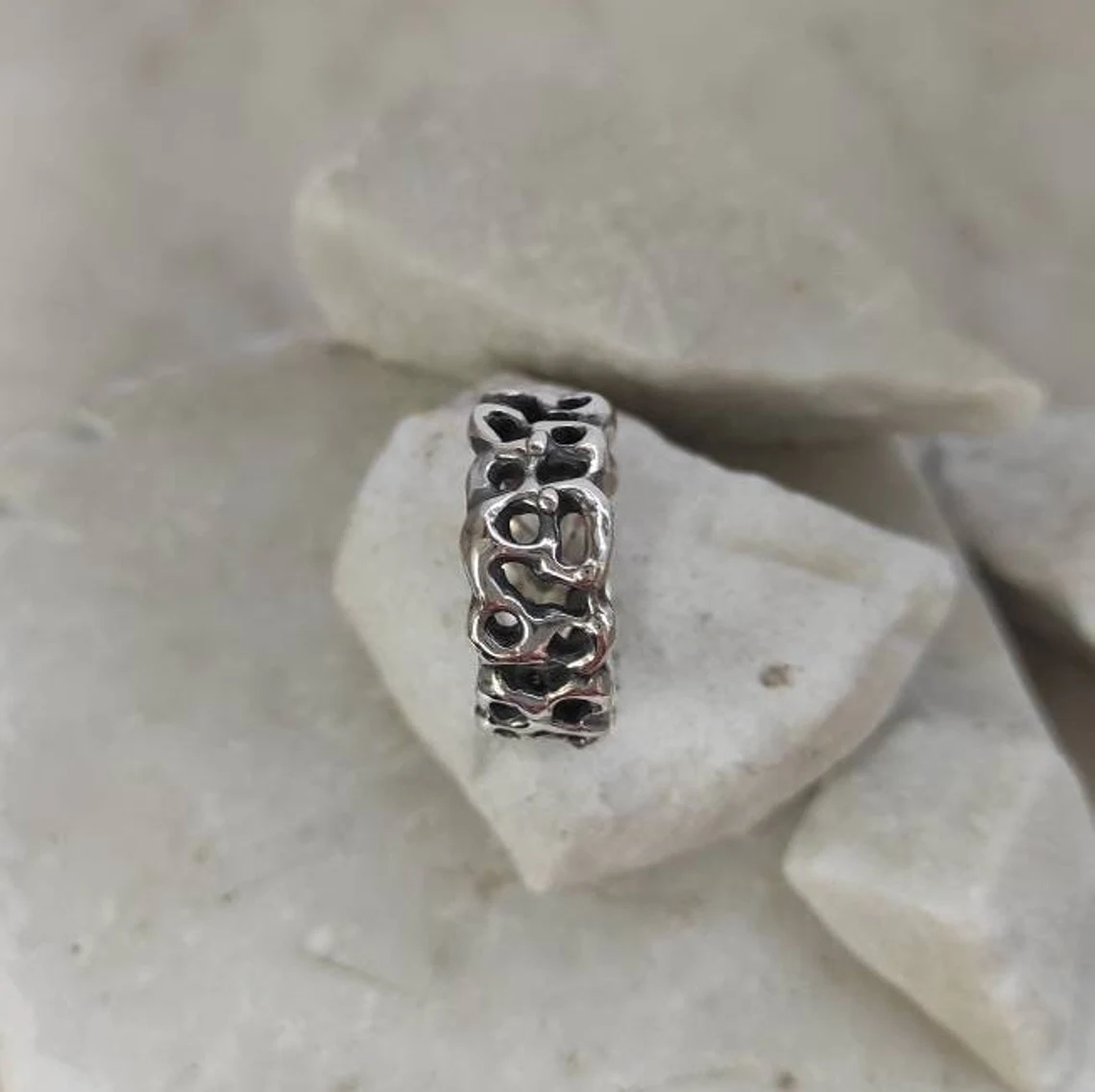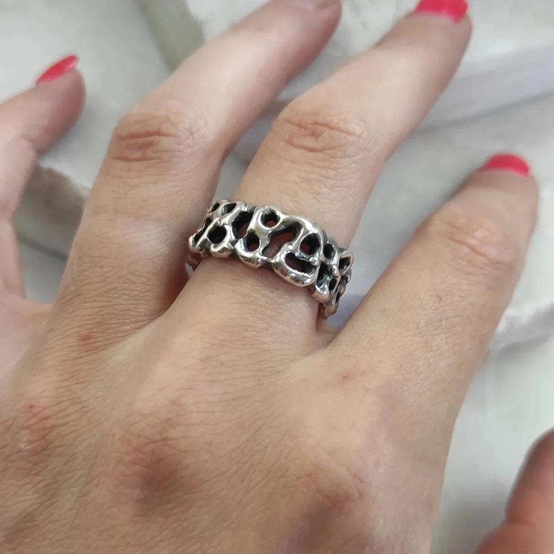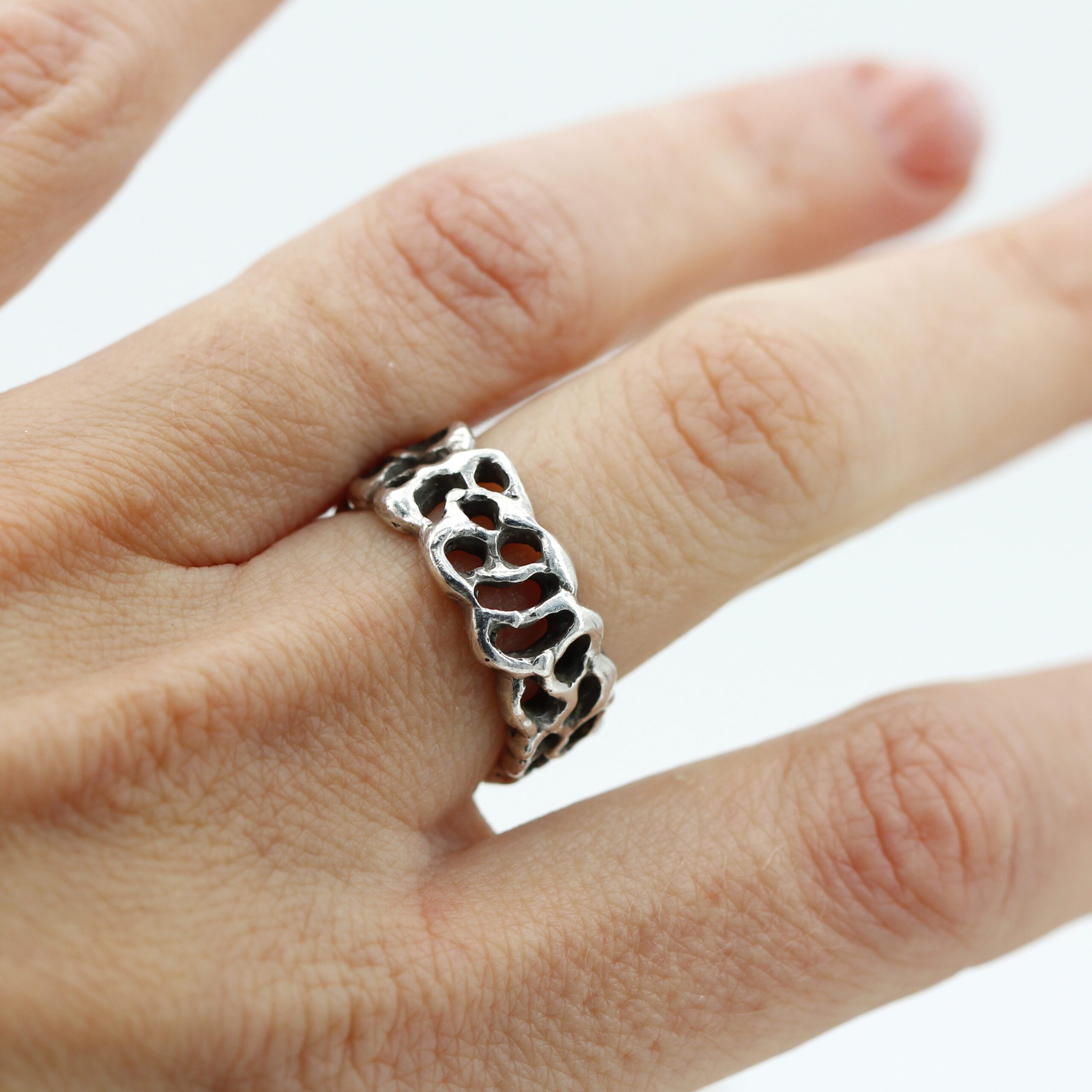 A ring design inspired by the jagged and mysterious surface of Mars, meticulously recreating the craters and depths of the Red Planet’s terrain.