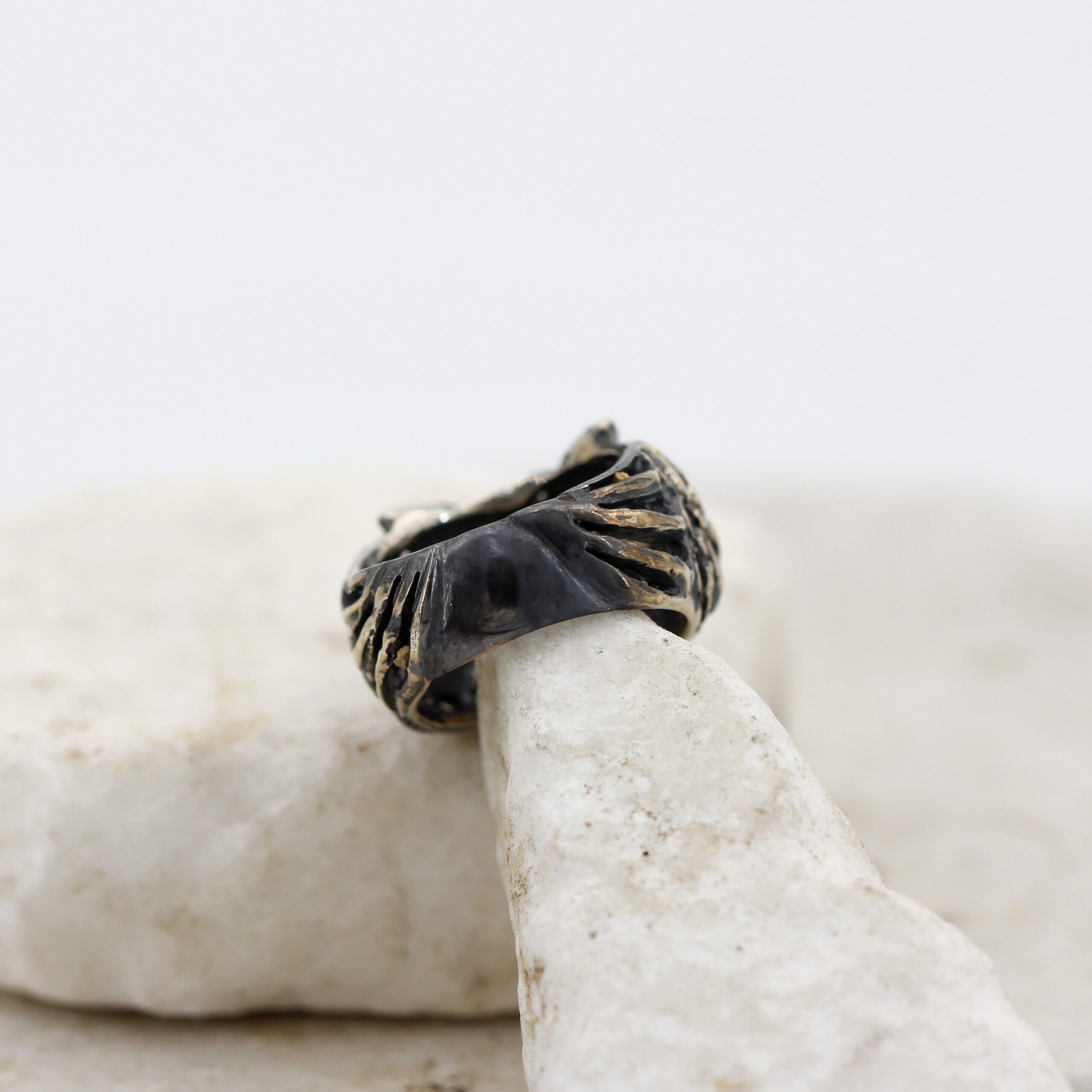 The precisely openworked plumage and the soft yet defined lines that shape the band.