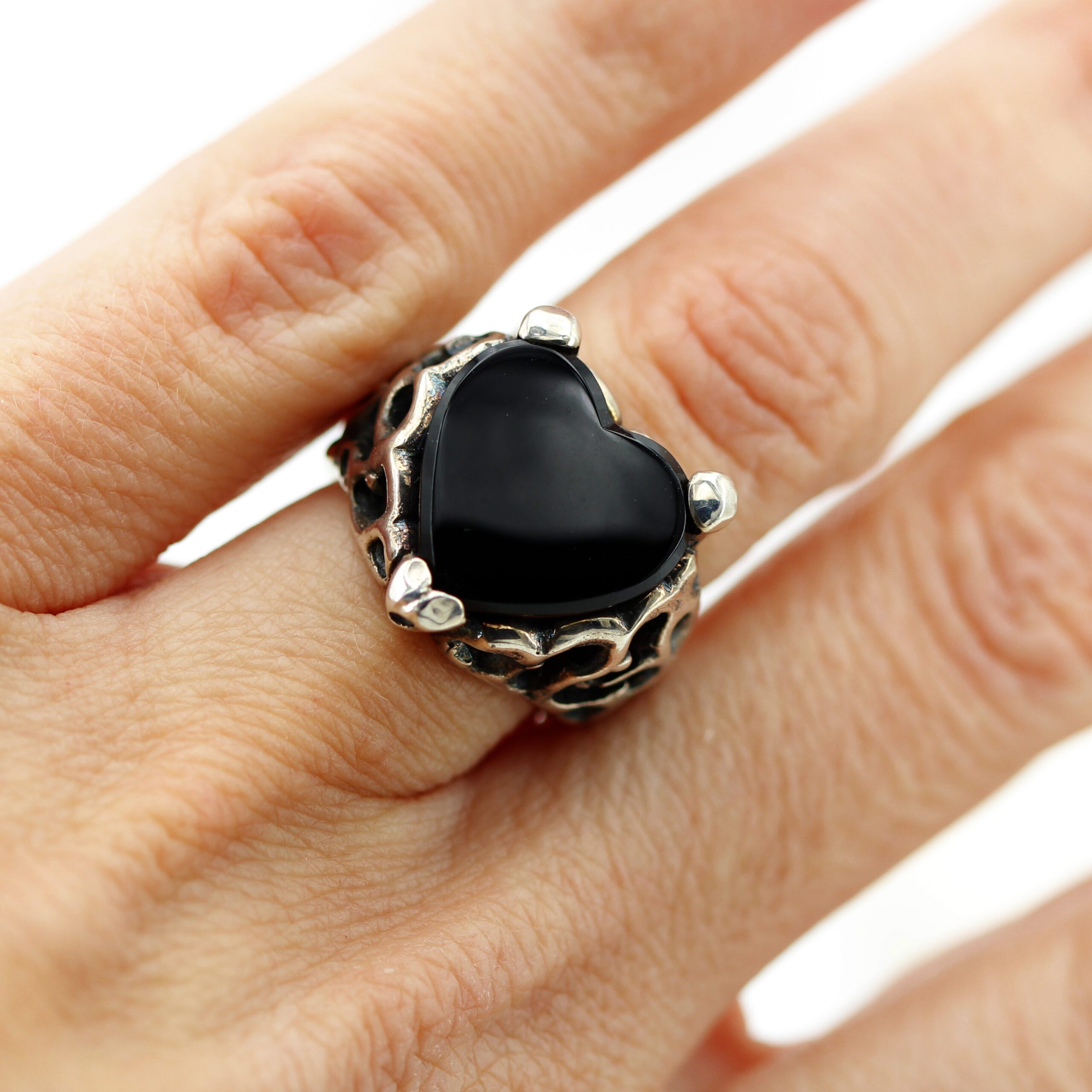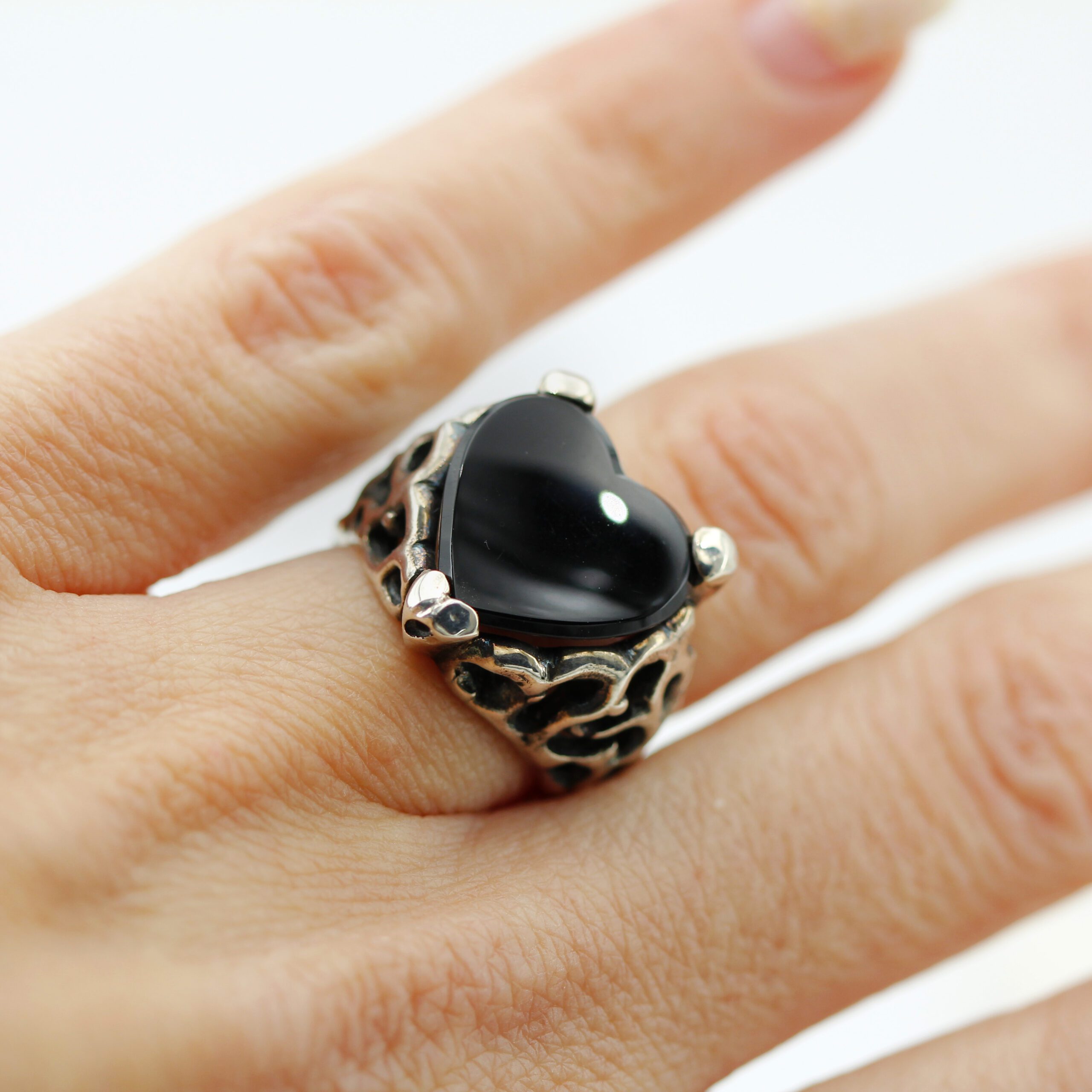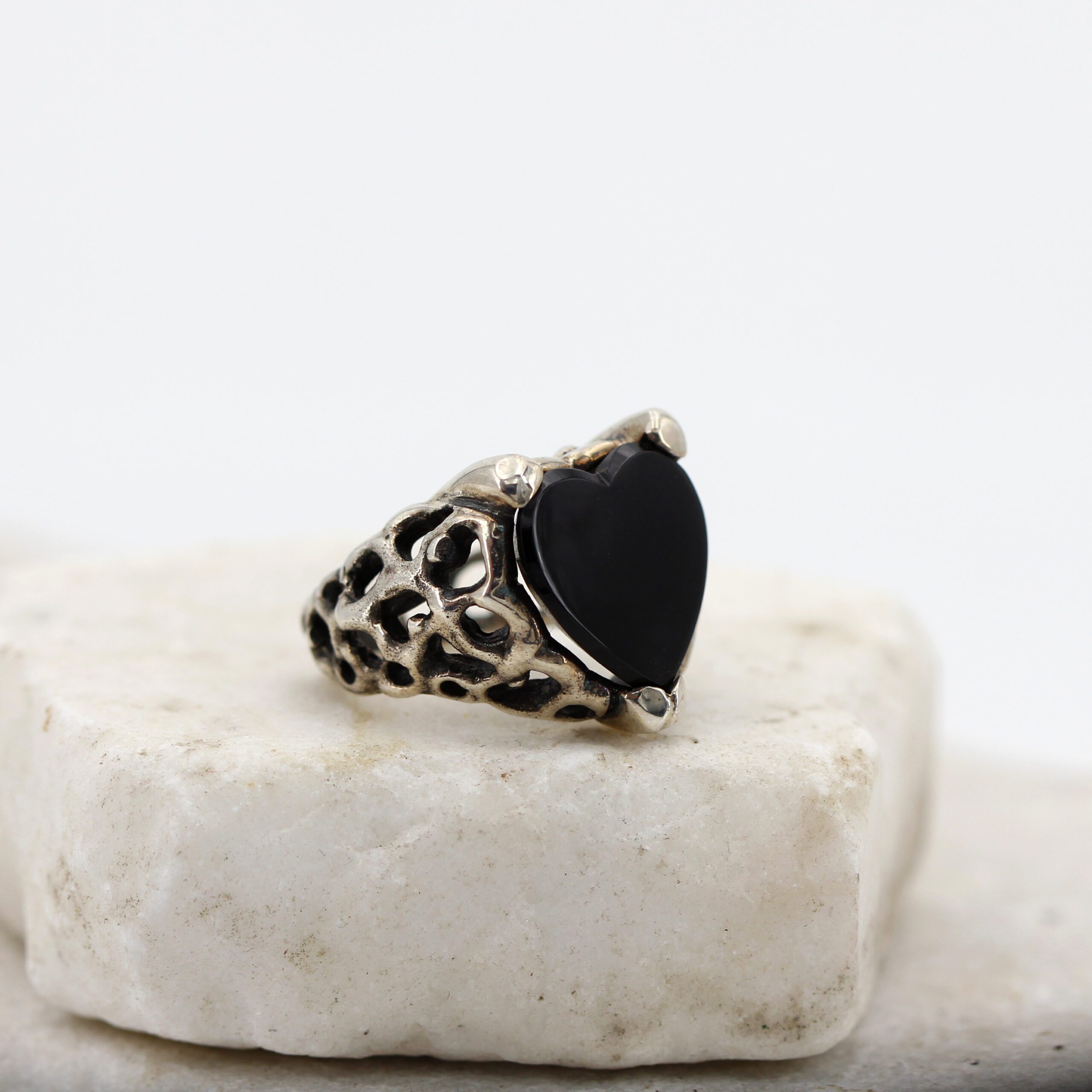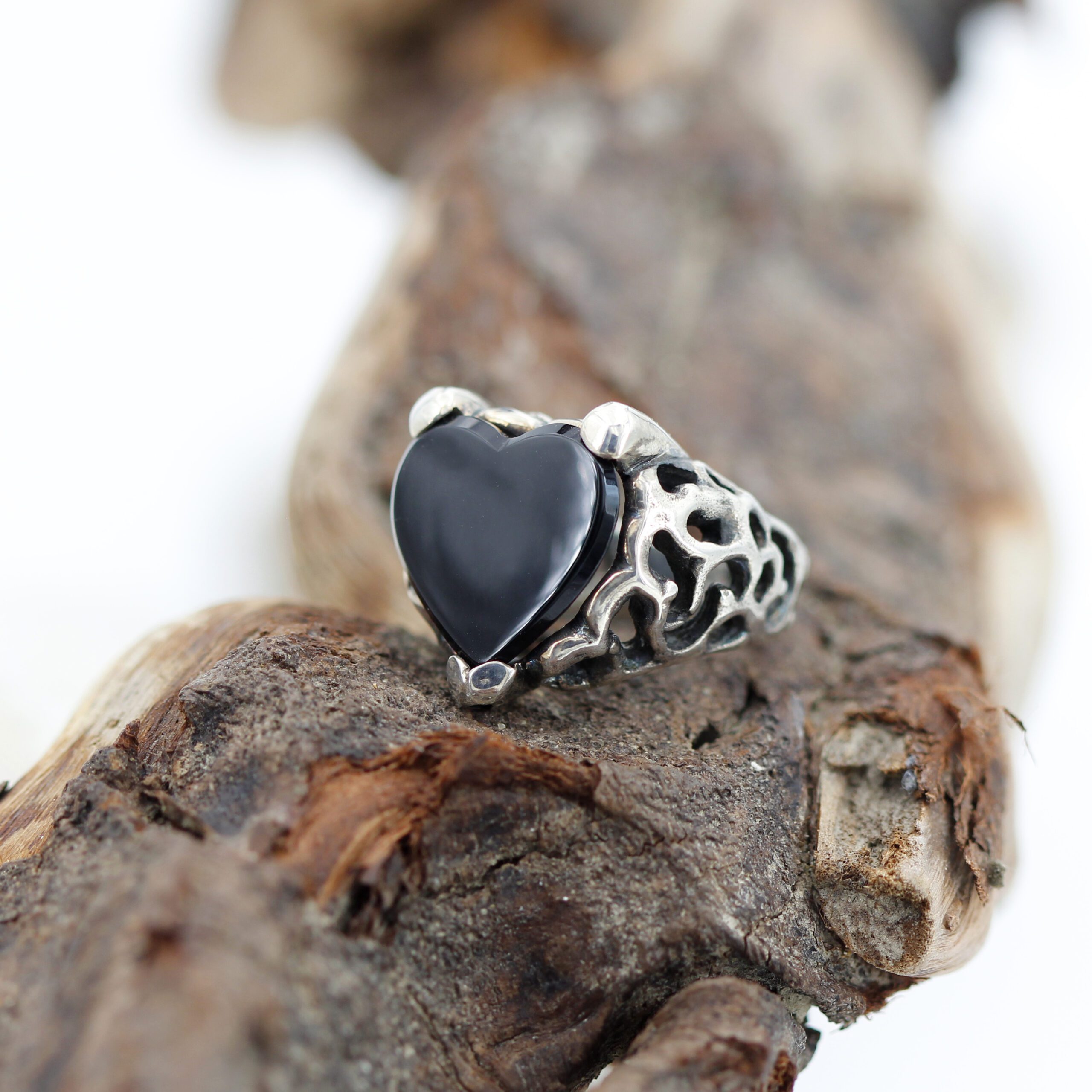 This ring design is inspired by the rugged and mysterious surface of Mars, recreating in fine detail the craters and depths of the Red Planet’s terrain. It is embellished with a natural heart-shaped black Onyx, symbol of strength and intensity.