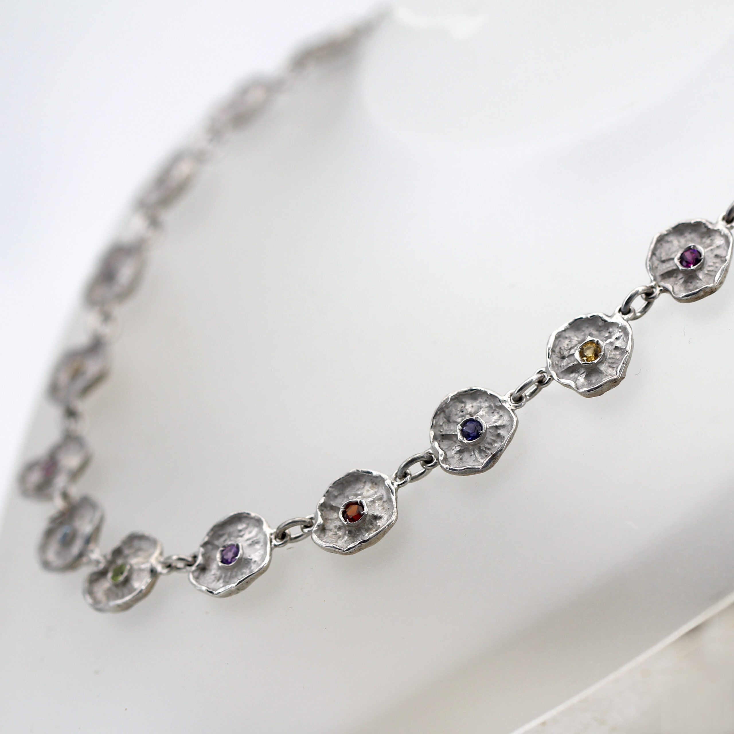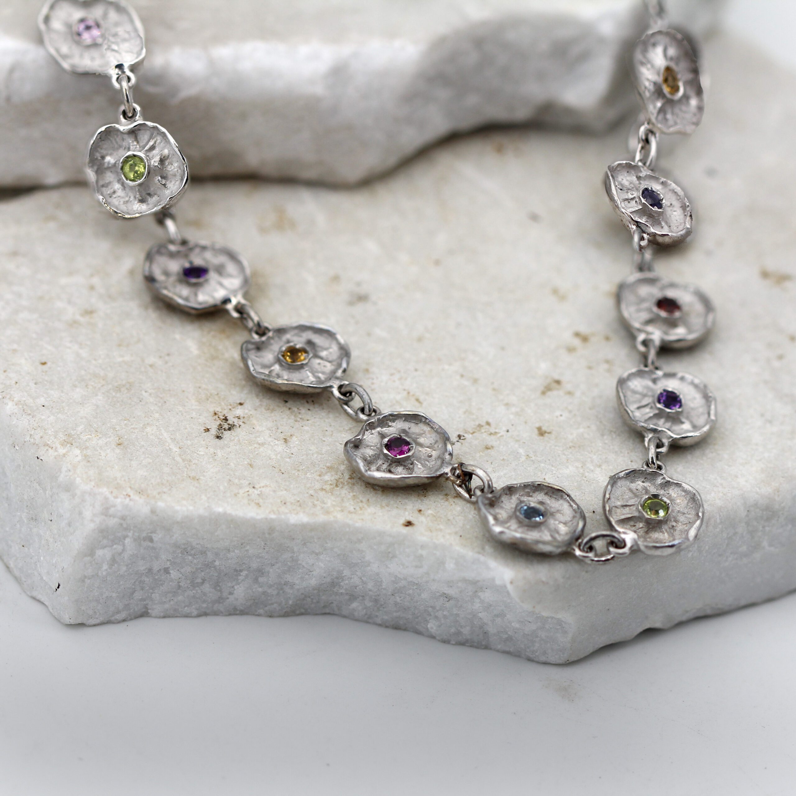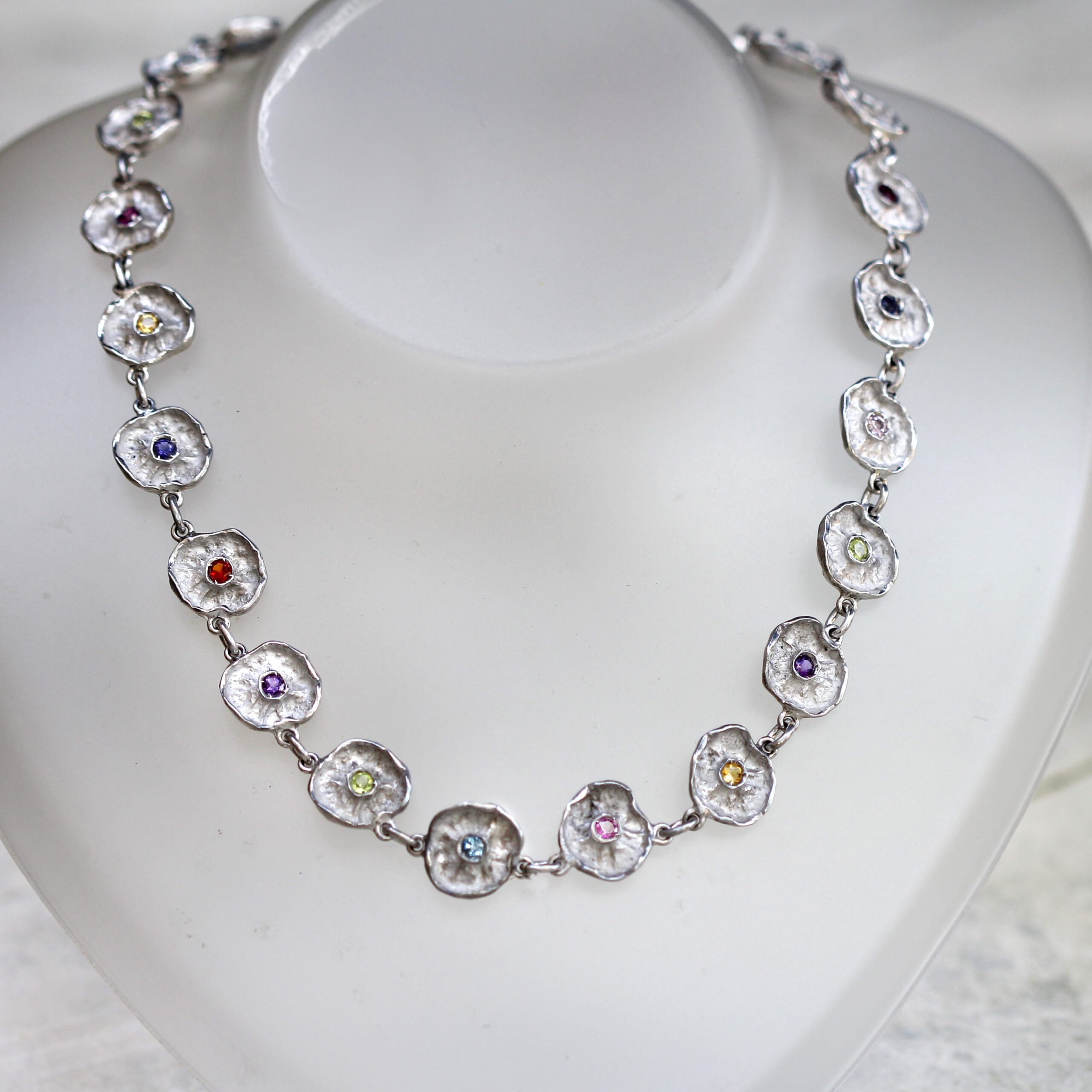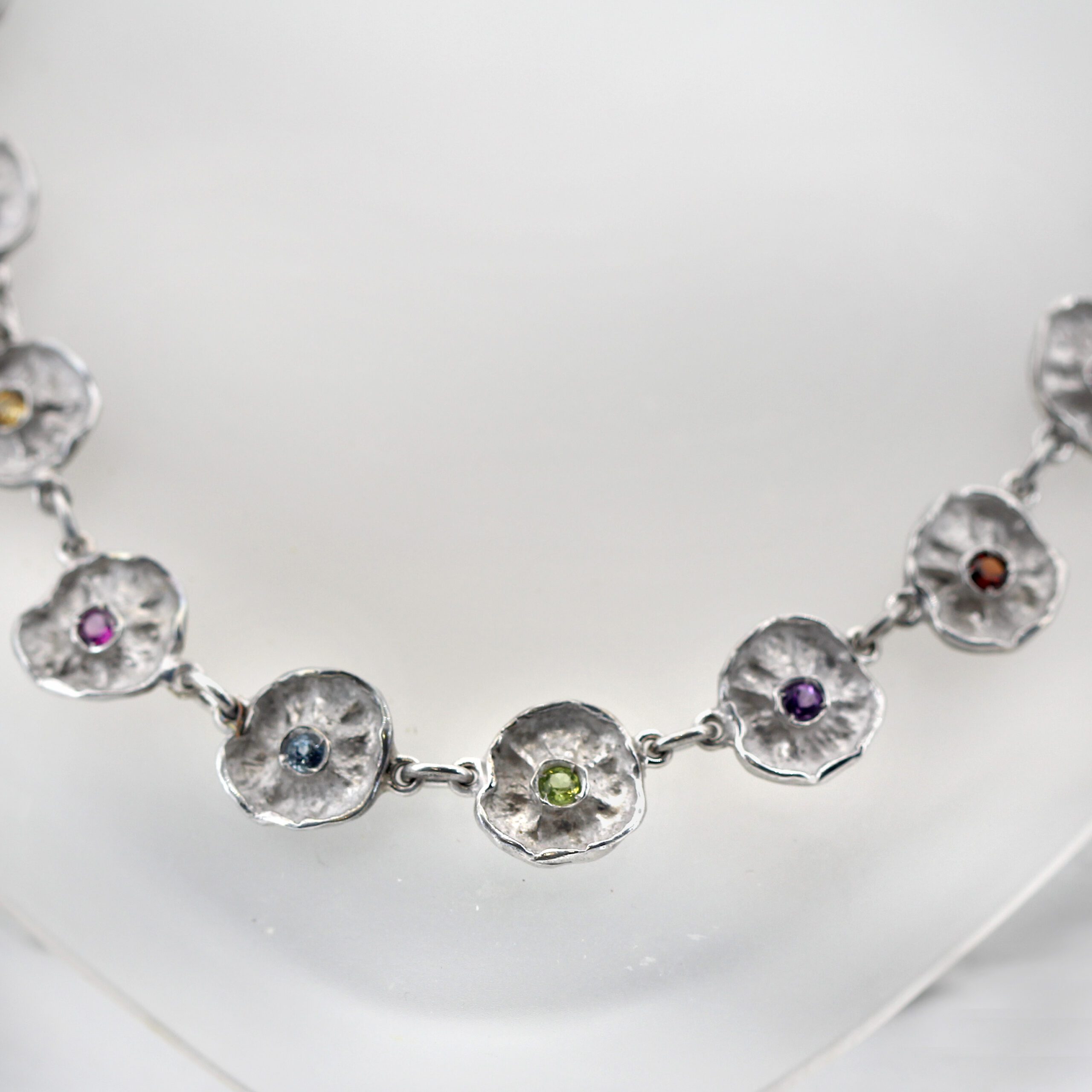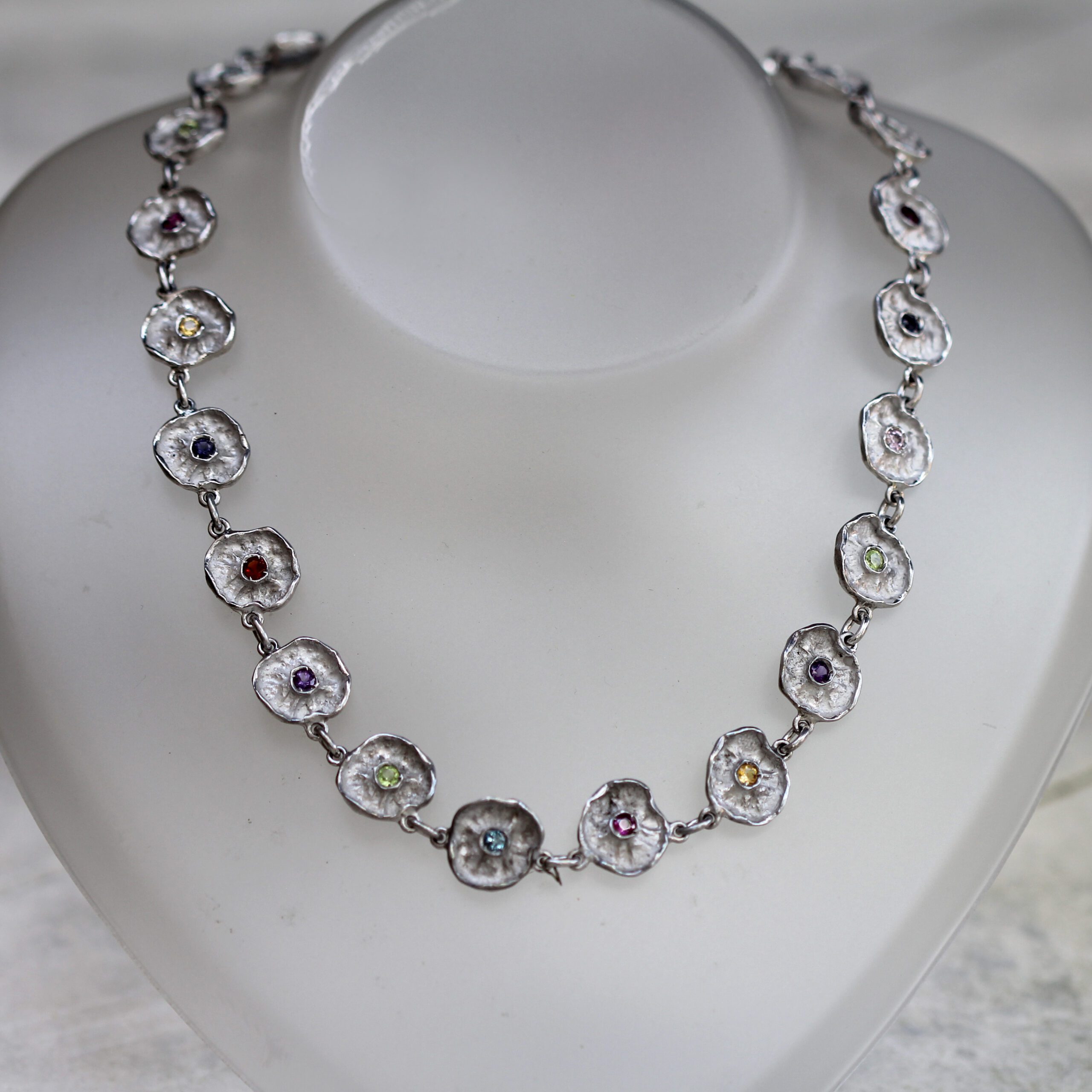 “Winter Flower” Necklace in 925 Silver with 22 Flowers and Semi-Precious Stones